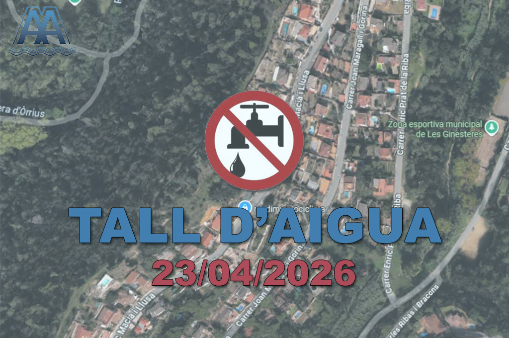💧 Aigües d’Argentona, S.A. informa que el dijous 23 d’abril de 2026 es realitzarà un tall temporal del subministrament d’aigua a causa de les obres de renovació de la xarxa d’aigües al sector de Ginesteres.